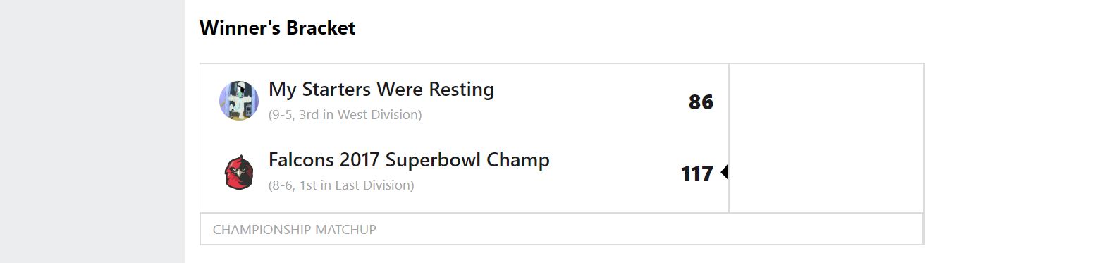 - Championship: #2 Kyle defeats #4 Harold 117-86
